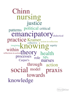 The latest featured article in ANS is titled “Cultivating Praxis Through Chinn and Kramer’s Emancipatory Knowing” authored by Jessica Peart, BSN, BA, RN and Karen MacKinnon, PhD, RN. In this article the authors explain how emancipatory knowing provides nurses a formal structure to recognize the sociopolitical factors affecting wellness, while making evident the ethical imperative and central role of taking reflective action toward social change—the praxis of nursing. The article is available for download at no cost while it is featured, and we welcome your comments and ideas!  Here is a message from Jessica Peart about this work: