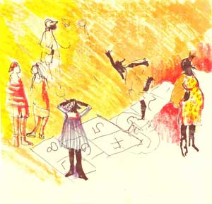been a fellow traveler on this study from the time we began our first semester as doctoral students together. Because Vickie’s dissertation focused on older mothers with career commitments, pouring over our interviews and sharing stories from our respective families provided a rich comparison for how social worlds set up different and similar meanings, practices, and ways of being a mother. With each follow-up study, Vickie has read several cases to help clarify and refine my interpretations. Every researcher should be so lucky. The artwork accompanying this blog was created by Hilda Robinson, a dear friend and artist in Oakland, California, who turned the family stories of my dissertation into these and other paintings.